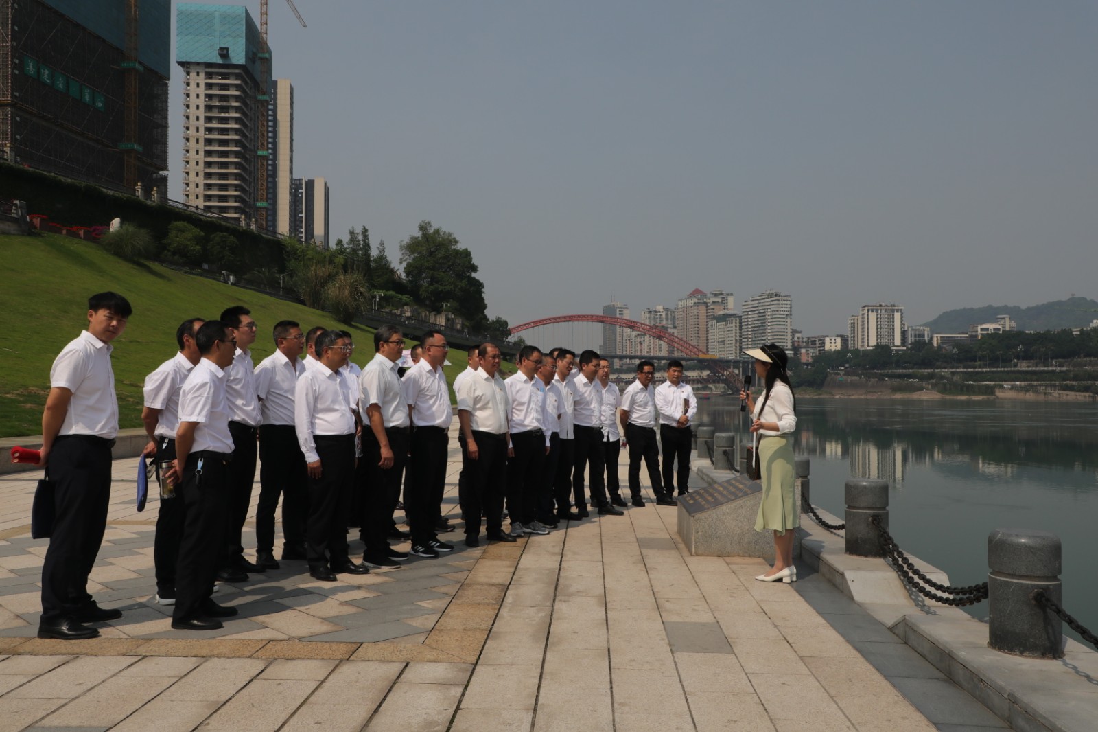 在三江口,两岸绵延至远的亲水步道,环境优美的长江公园,满目含翠,鸟翔鱼跃,水青、岸绿、景美,一幅人与自然和谐共生的动人画卷徐徐展开,共抓大保护、不搞大开发”的生动实践呈现眼前。学员们聆听宜宾市委党校副教授廖艳现场讲述,了解习近平总书记在三江口考察长江流域生态修复保护、禁捕退捕等情况时的真实场景,身临其境感悟习近平总书记关于“绿水青山就是金山银山”的发展理念,深刻领会“筑牢长江上游生态屏障,以酿美酒的标准守护一江清水”的重要指示和殷殷嘱托。