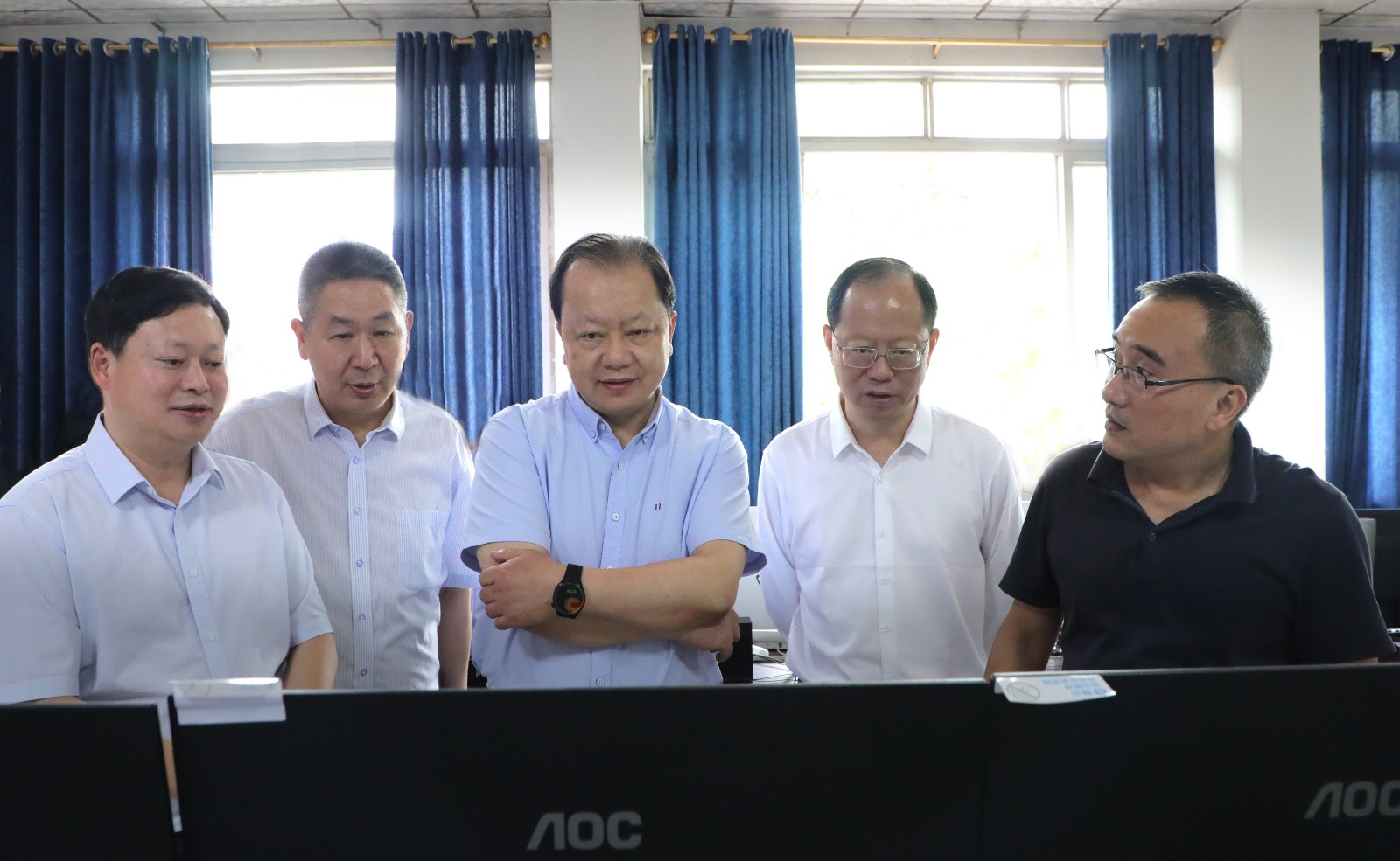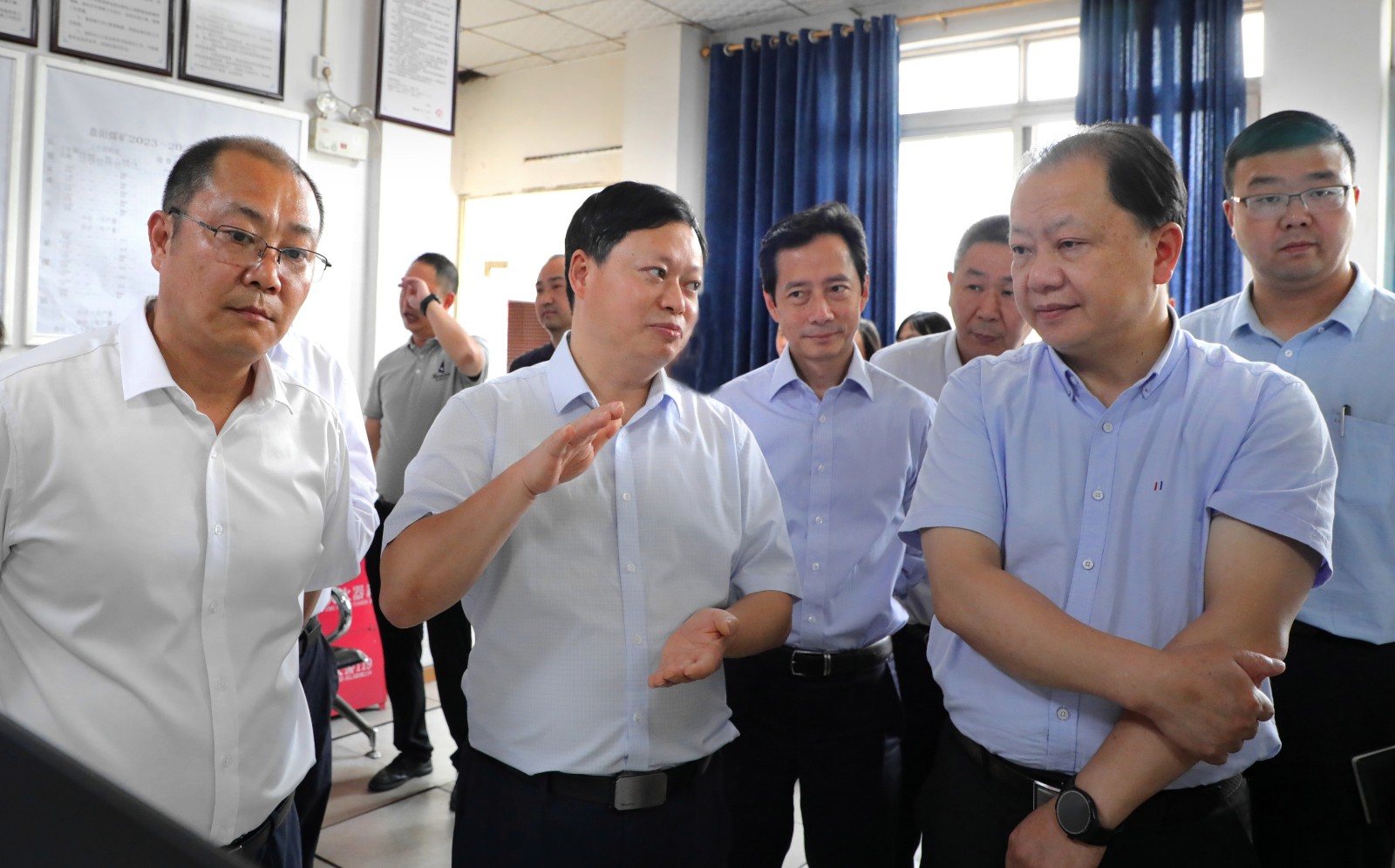 梁武湖一行在矿井监控调度中心通过查看视频监控、现场听取汇报等方式详细了解企业安全生产、智能化建设等工作情况,与企业相关人员进行了深入交流,给予了充分肯定,并提出了许多好的建议。