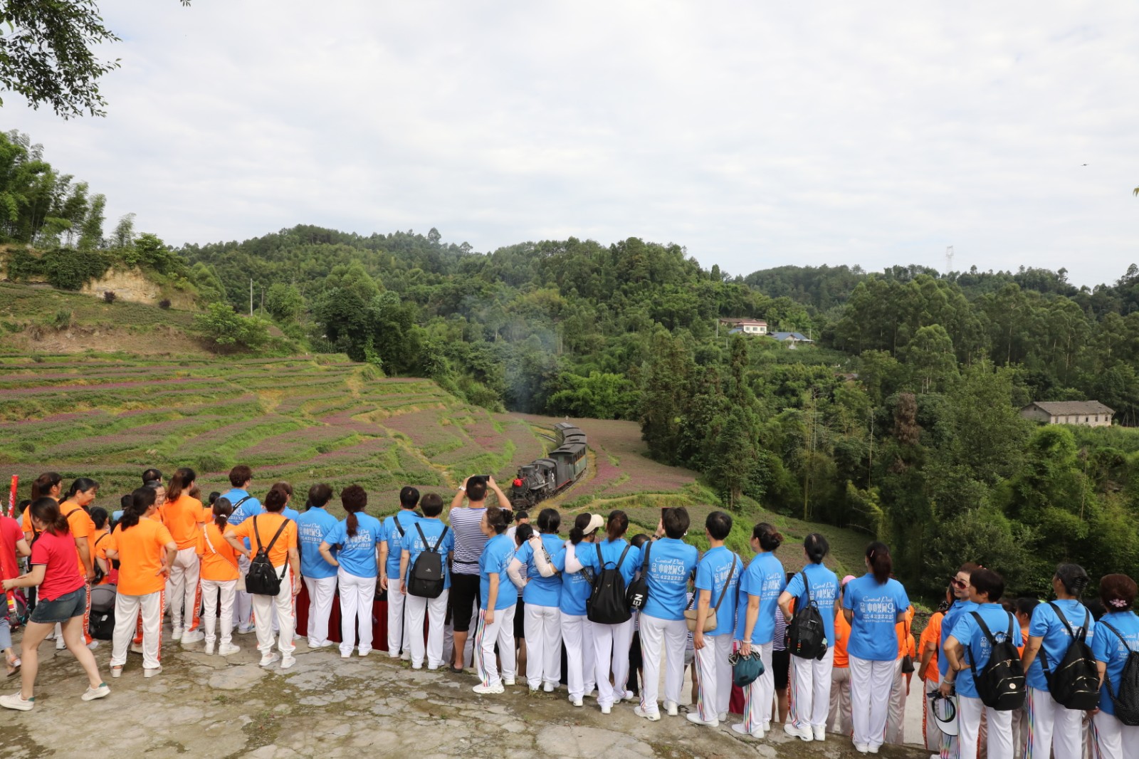 在启动仪式上,集团公司党委书记、董事长杜勤祝贺芭石铁路建成通车65周年,并宣布小火车“千日红花季”正式启动。据《嘉阳集团志》记载,65年前,在上万人历时一年的艰苦奋战后,芭石铁路建成通车。从此,嘉阳小火车便承载着矿工与周边村民的生计与希望奔驰在19.84公里的铁路沿线上。65年来,它见证了沿线村民的婚丧嫁娶、喜怒哀乐,历经了嘉阳转型发展的阵痛,实现了从矿工与村民进出大山的交通工具到工业旅游的华丽转身,焕发出了蓬勃的生机。