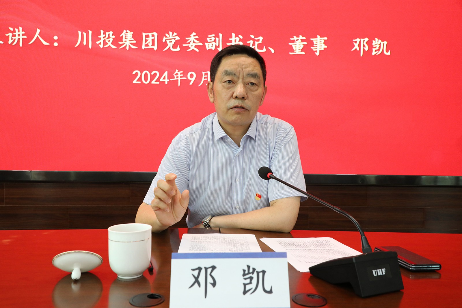 9月13日,川投集团党委副书记、董事邓凯到公司开展党的二十届三中全会精神宣讲活动,围绕“5个深刻把握”和“1个全面落实”深入解读全会精神,并结合企业实际提出学习贯彻要求。