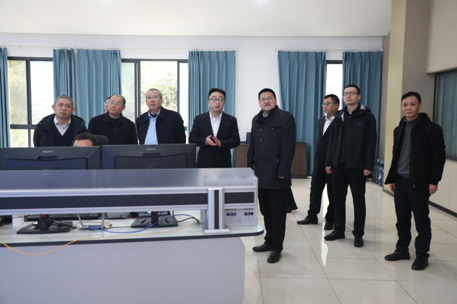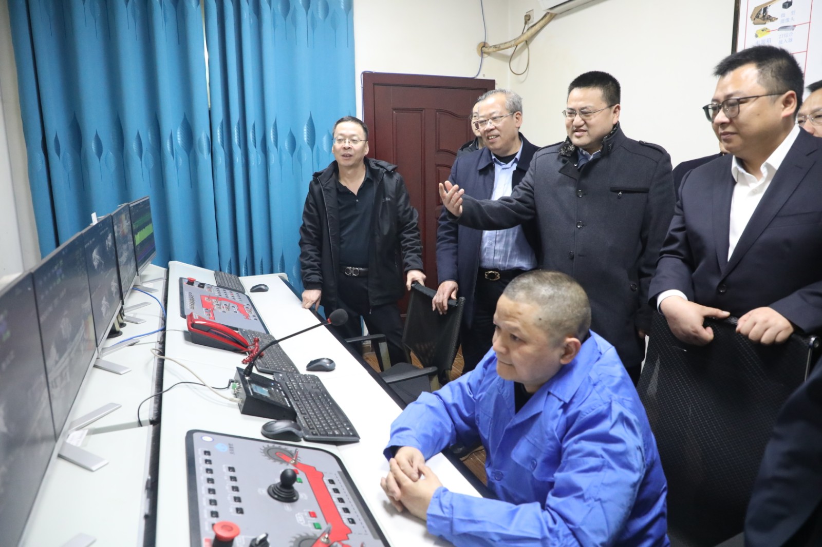 蔡稳成副司长一行深入嘉阳煤矿调度监控中心实地查看矿井安全生产情况,重点检查了煤矿瓦斯治理、水害防治、顶板管理、机电运输等关键环节的安全制度建设和措施落实情况。走进采一队与采二队地面集控中心,详细了解了嘉阳煤矿智能化建设进展现状,现场观摩了智能化采煤工作面远程操控情况。
