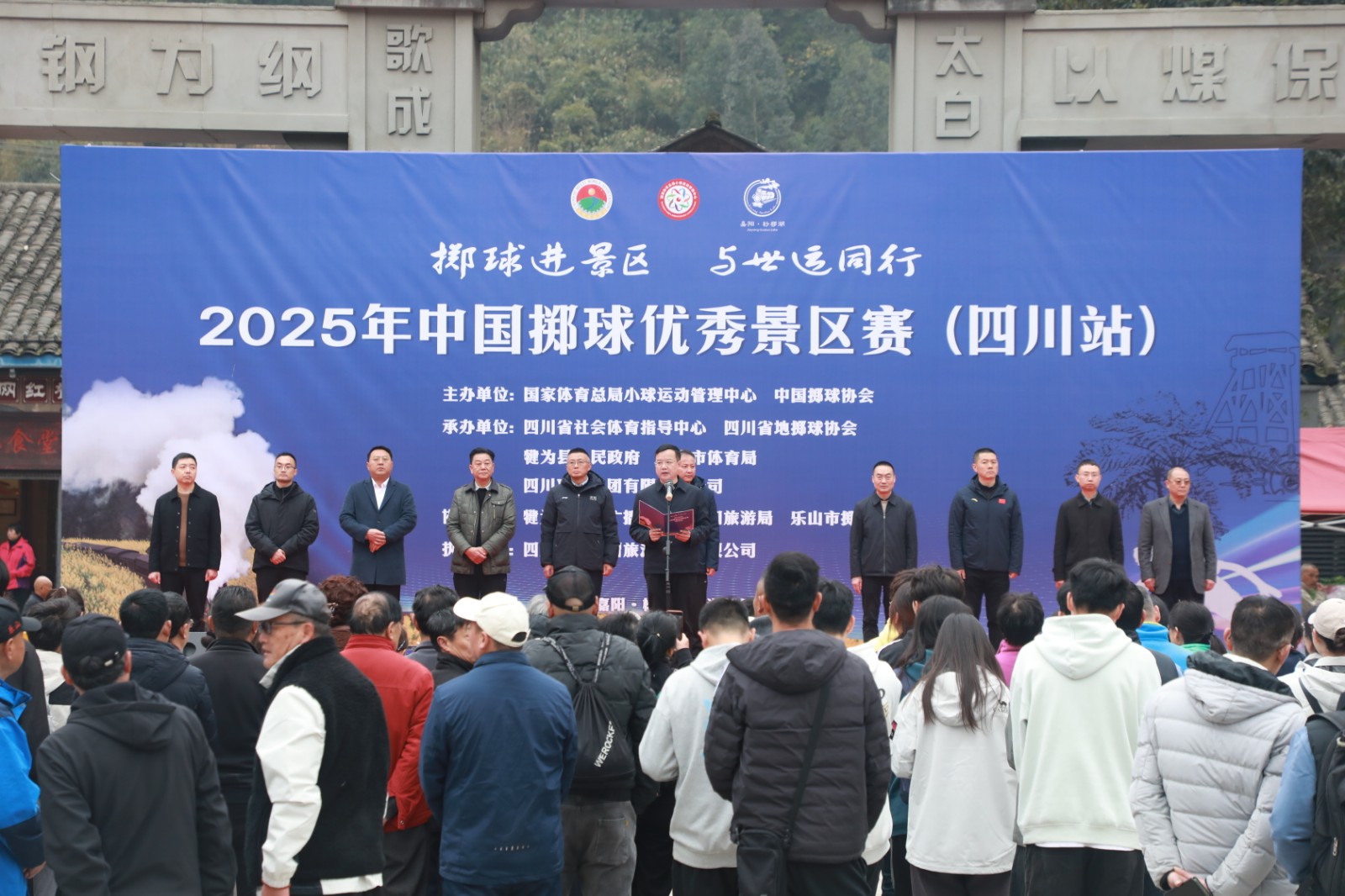 本届赛事由国家体育总局小球运动管理中心、中国掷球协会主办,四川省社会体育指导中心、四川省掷球协会、乐山市体育局、犍为县人民政府、四川嘉阳集团承办。开幕式上,乐山市人民政府副市长许天毅致欢迎辞。国家体育总局小球运动管理中心副主任、中国掷球协会主席王赟宣布2025年中国掷球优秀景区赛正式启动暨四川站比赛开赛。现场,犍为“非遗”项目“麒麟灯”、四川瑰宝“川剧变脸”等文艺演出精彩纷呈,将当地特色文化与体育元素巧妙融合,为现场观众带来了一场视觉与听觉的盛宴。
