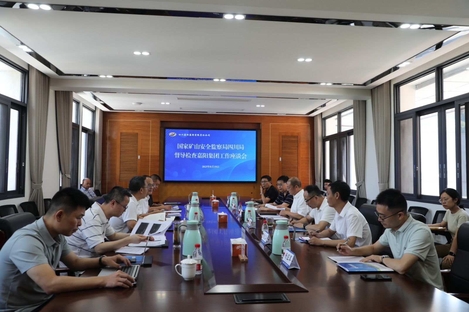 8月19日,国家矿山安全监察局四川局局长王其江一行督导检查嘉阳集团,乐山市应急管理局局长刘杨、犍为县副县长杨谦,市县相关部门负责人陪同督导,集团公司党委副书记、总经理范勤英,分管领导,煤矿矿长及相关矿领导参加督导。
