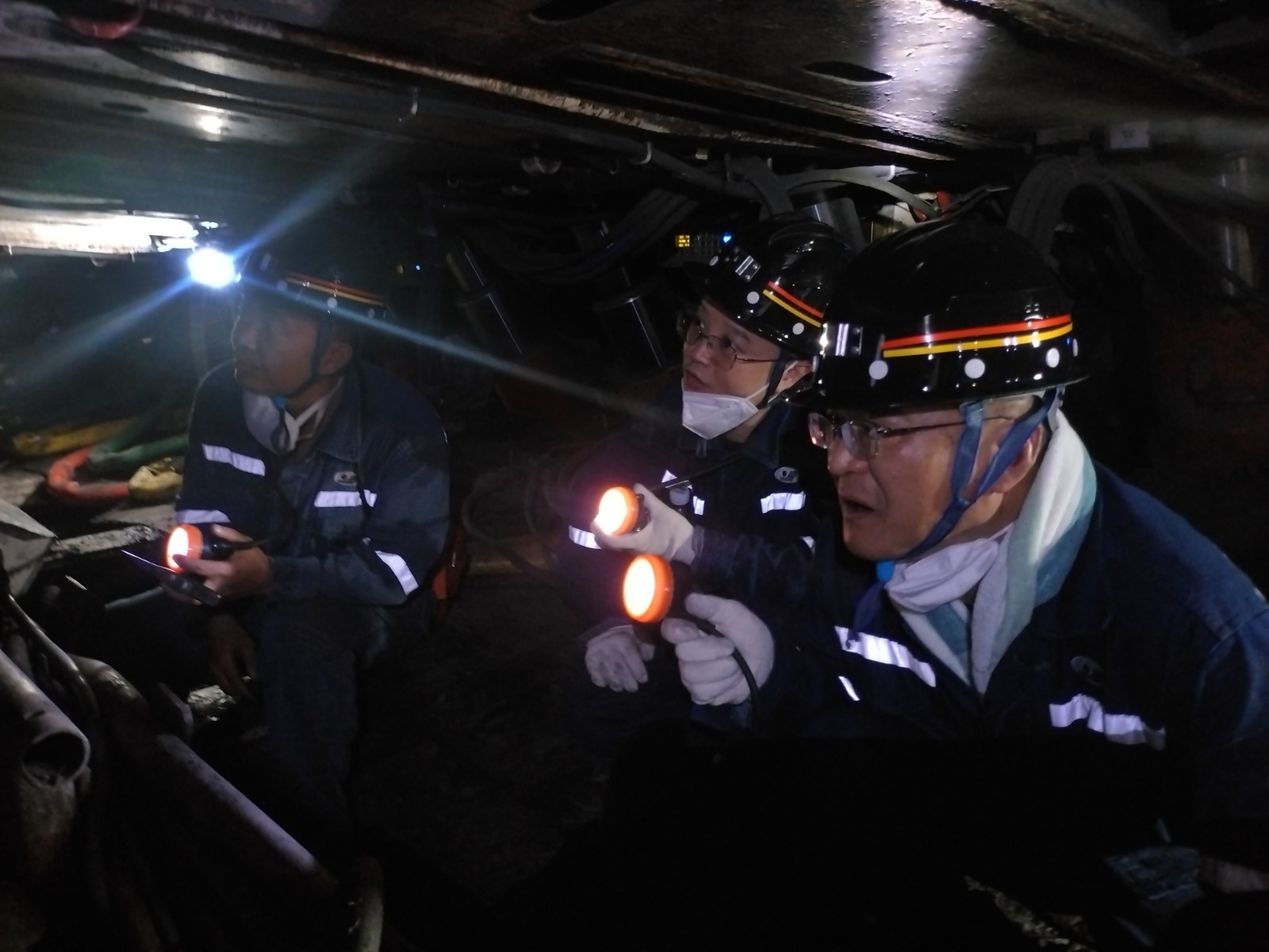 下午,督导组一行在范勤英及煤矿相关负责人陪同下,深入天锡井+160m水平开展安全技术督导检查,督导组对嘉阳煤矿安全文化建设及“三个保障”发展理念高度赞赏,对主煤流、机电、瓦斯抽采、压风自救、人员定位、智能化生产等系统的设施设备展开随机抽查,向现场技术人员进行专业提问,了解瓦斯抽采技术进步、智能化综采生产状况。立足新标新规,督导组提出完善设施、筑牢安全生产防线的建议,为嘉阳煤矿安全生产精准把脉,助力企业提升安全管理水平,保障矿井长治久安。