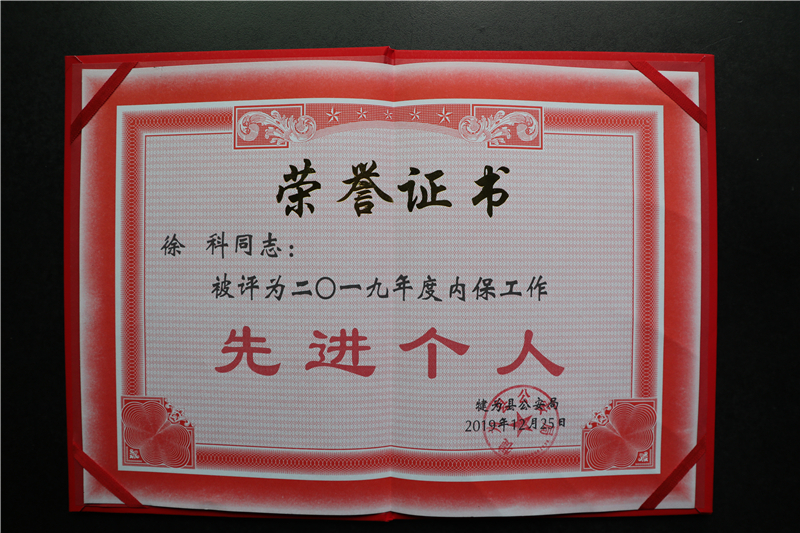 12月24日,犍为县公安局对2019年度单位内部治安保卫工作先进集体和个人进行表彰,嘉阳集团单位榜上有名,被授予2019年度内保工作先进集体荣誉称号,保卫部徐科同志被评为2019年度内保工作先进个人。