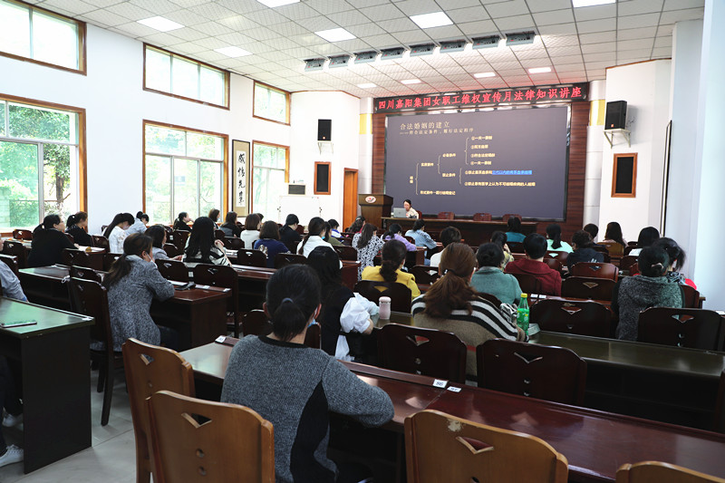 3月24日下午,由嘉阳集团公司工会、女职工委员会组织开展的“女职工维权宣传月法律知识讲座”在集团公司办公楼底楼会议室举行,来自各单位的女工代表50余人聆听了讲座。