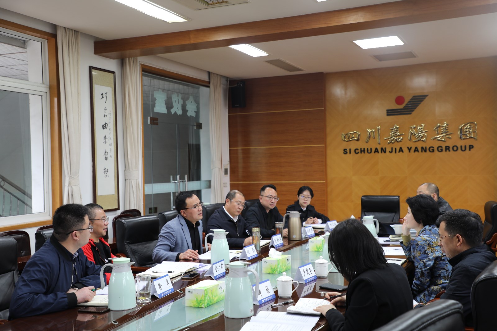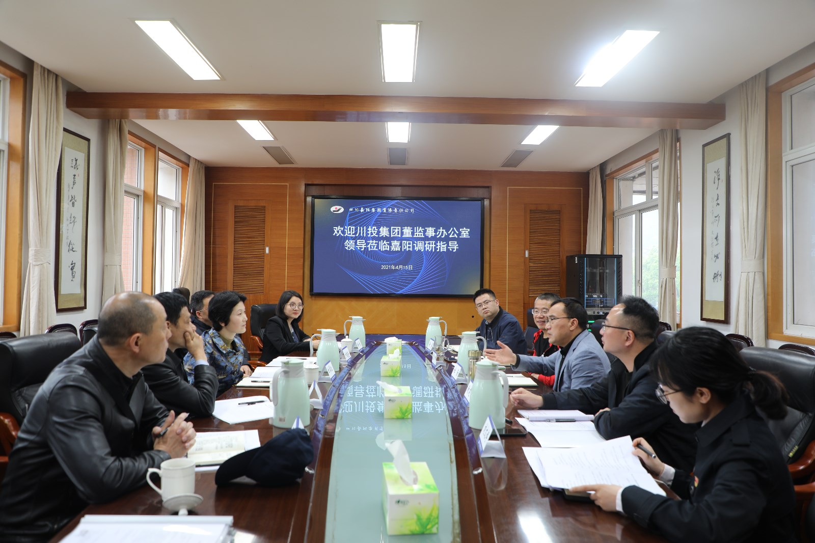 为进一步完善企业法人治理结构,促进企业健康持续发展。4月15日下午,川投集团董监事办公室主任白翠红率队赴嘉阳调研指导工作,嘉阳集团党委书记、董事长杜勤,总经理范勤英,党委副书记谢建国,副总经理金大钧等陪同调研。