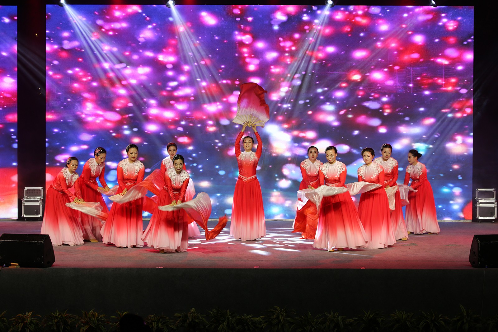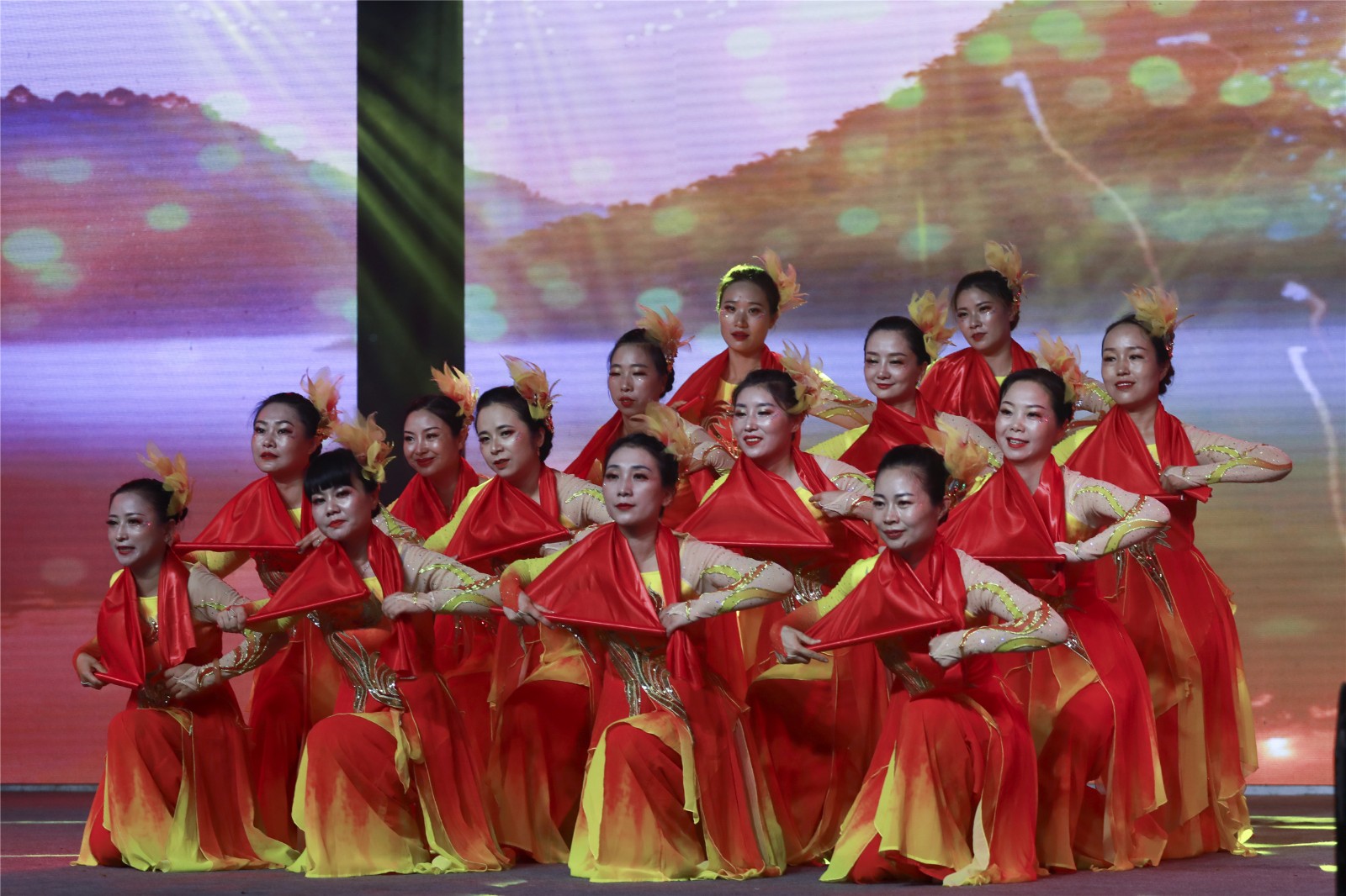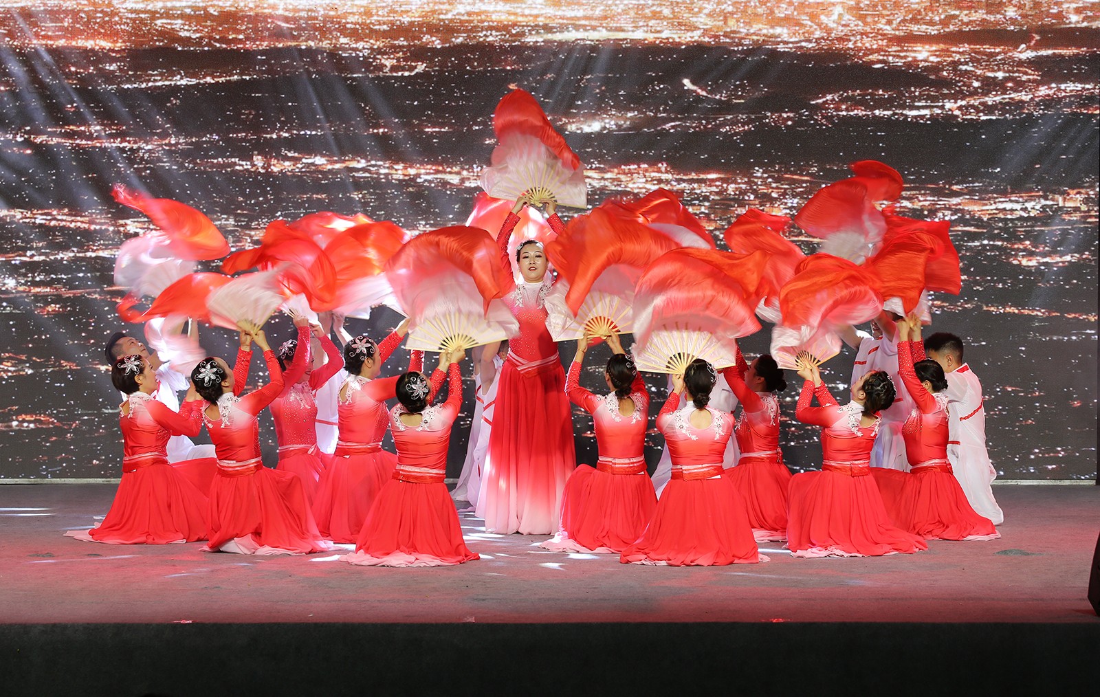 晚会在红歌大联唱中拉开帷幕,观众们随着节奏挥舞着手中的小红旗、荧光棒,整个体育场汇聚成了一片闪耀的红色星海。舞蹈《再唱山歌给党听》《领航中国》、合唱《红旗飘飘》《跟着共产党走》、三句半《小芭蕉说党史》、乐器合奏《盛世国乐》等16个精彩节目轮番上演,为现场观众带来一场视觉盛宴和精神洗礼。诗朗诵《生命之花》深情并茂地讴歌了中国共产党百年风雨历程中的英雄、先锋以及他们的献身精神,赢得了观众阵阵掌声。一首激越高昂的女声独唱《我和我的祖国》表达了对祖国的诚挚祝愿和对美好生活的无限期盼。大灾面前有大爱,舞蹈《激流勇进》再现嘉阳志愿者团结一心、众志成城抗洪救灾,为犍为“8.18”灾后重建贡献嘉阳力量的动人场景。新时代征程无限光明,强国使命催人奋进,舞蹈《燃烧吧,嘉阳》将煤矿“燃烧精神”展现的淋漓尽致,焕发出独特的时代魅力,传承红色基因,坚定理想信念,凝聚奋进力量,激励嘉阳儿女砥砺前行再出发。