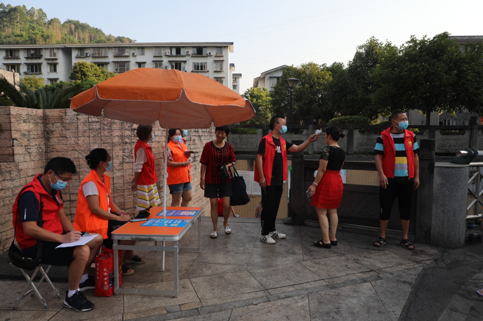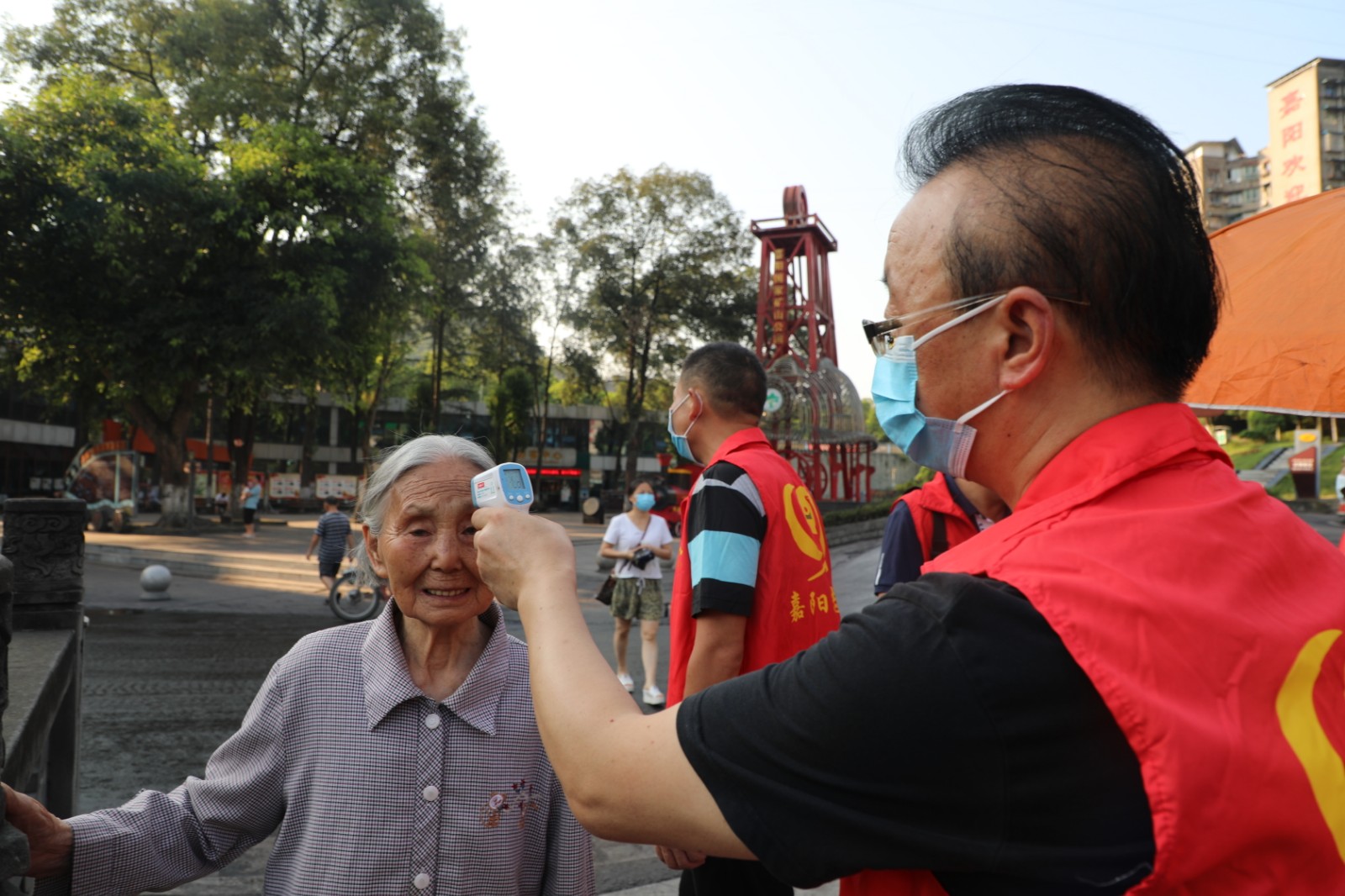 “请佩戴好口罩,扫一扫场所码……谢谢您的配合!”8月3日,嘉阳集团综合服务公司党总支的党员志愿者和芭沟社区志愿者共同开展疫情防控宣传。