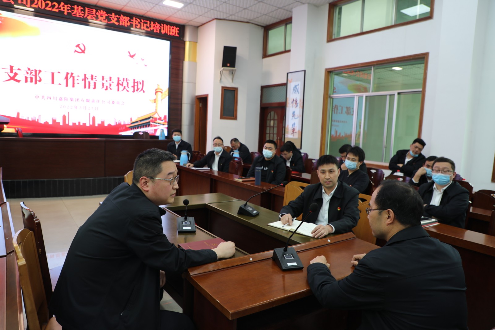 3月25日下午,一场生动形象的党支部工作情景模拟在嘉阳集团2022年党支部书记培训班的课堂上精彩上演,实训交流别开生面,效果良好。