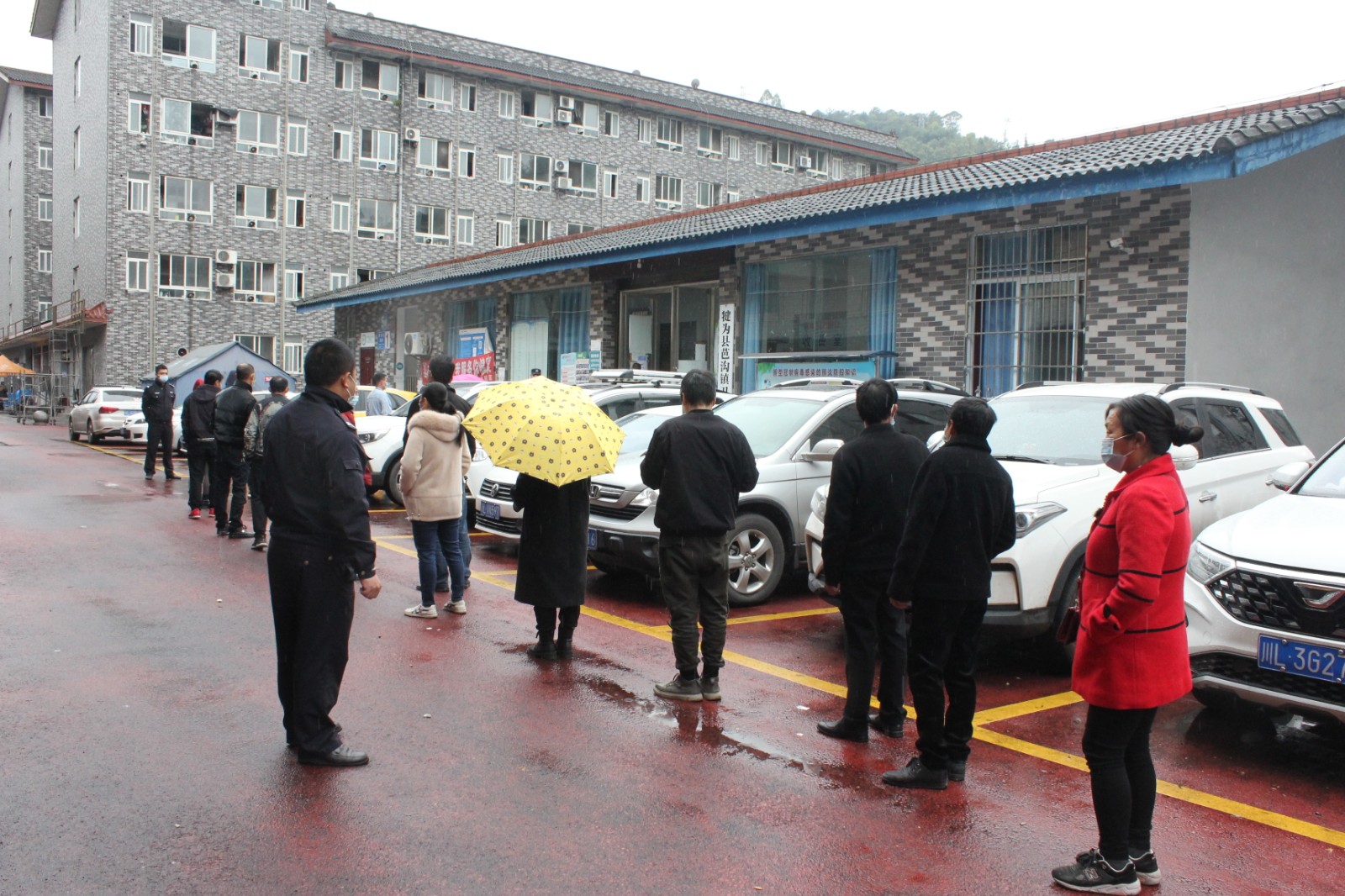 “核酸检测试剂充足,大家都能做,请保持安全距离,排好队依次进入卫生院接受检测”,在嘉阳集团保卫部楼下,等候检测的队伍从芭沟镇卫生院门口一直排到队站办公室,保卫部副部长蔡兴明,干警王博一边维持秩序,一边对职工群众进行防疫宣传“上下午都会做,大家不要着急”。