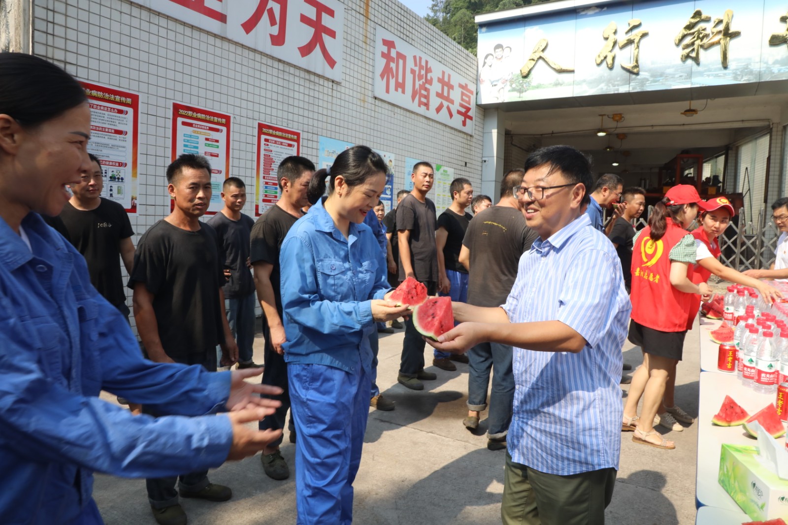 炎炎夏日暑难消、丝丝关爱沁人心。8月17日,乐山市总工会四级调研员胡志勇一行到嘉阳煤矿天锡井井口,看望慰问高温下奋战在一线的煤矿职工,送上清凉物品,表达组织的关心关爱。