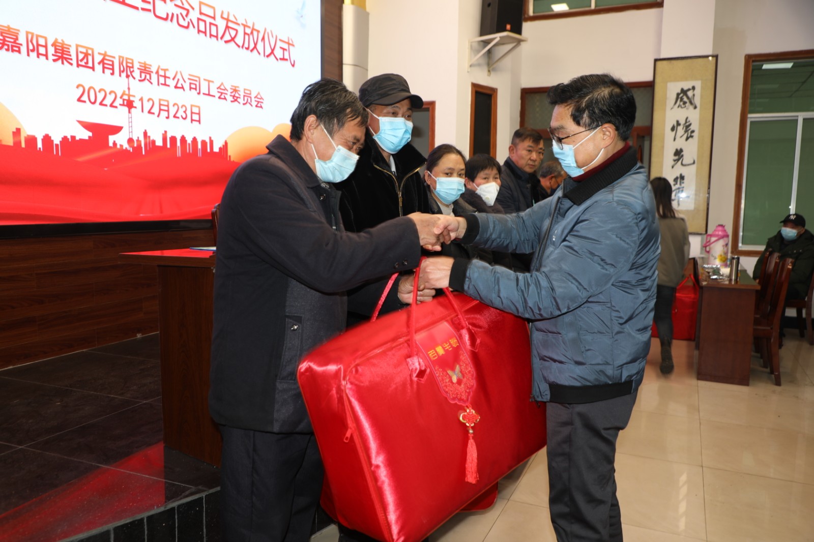 “莫道桑榆晚,为霞尚满天”。退休是人生的一大转折点,也是一个全新生活的开始,老同志们辛辛苦苦为嘉阳奉献几十载春秋,退出工作岗位后,可以有更多的时间照顾家庭、锻炼身体、享受美好生活。希望退休的同志能调整心态、适应新环境、开始新生活,乐享快乐的晚年,企业也将一如既往地关心、关爱大家。最后,衷心地祝愿所有退休老同志,老有所乐、老有所为、身体健康、阖家欢乐,万事如意!工会副主席张平亲手给参加仪式的每一位退休职工发放了纪念品并合影留念。
