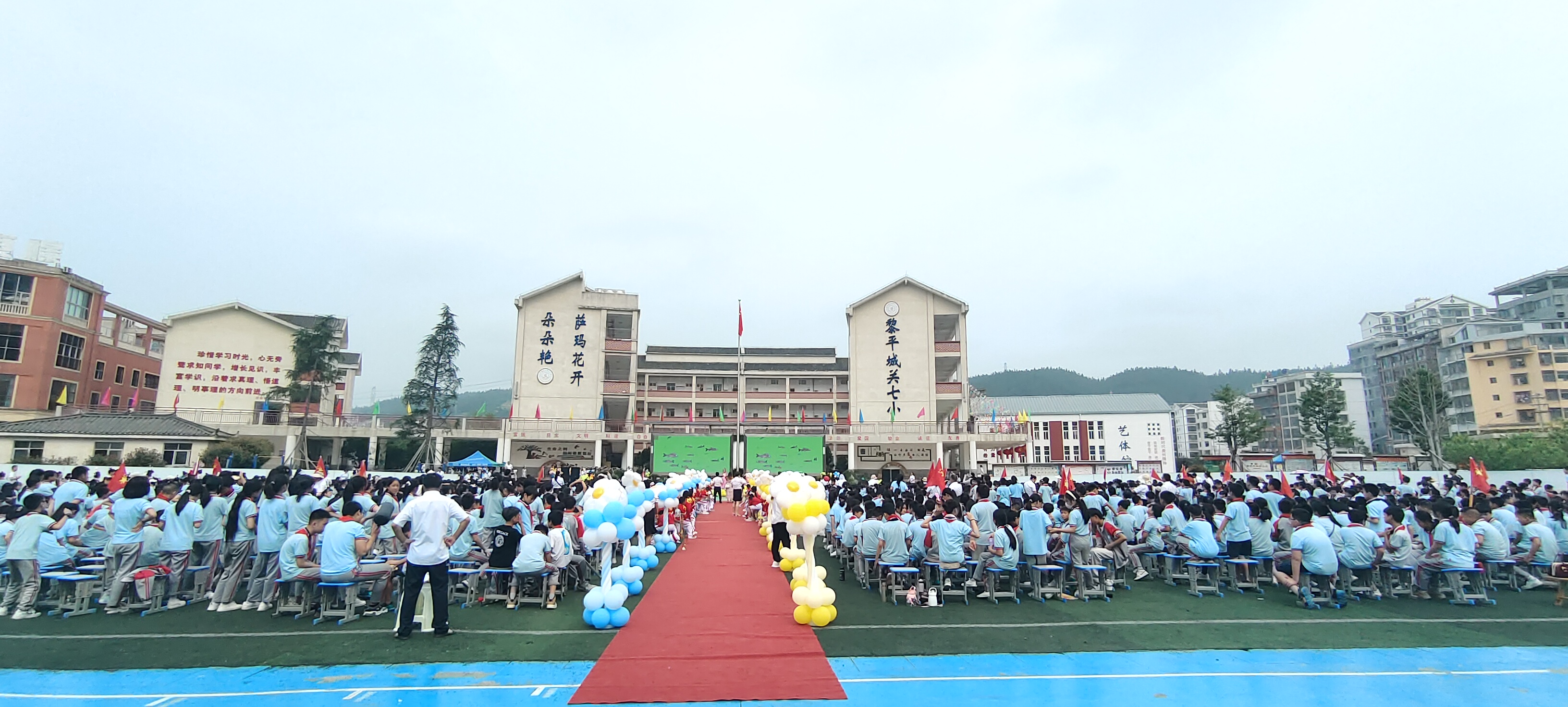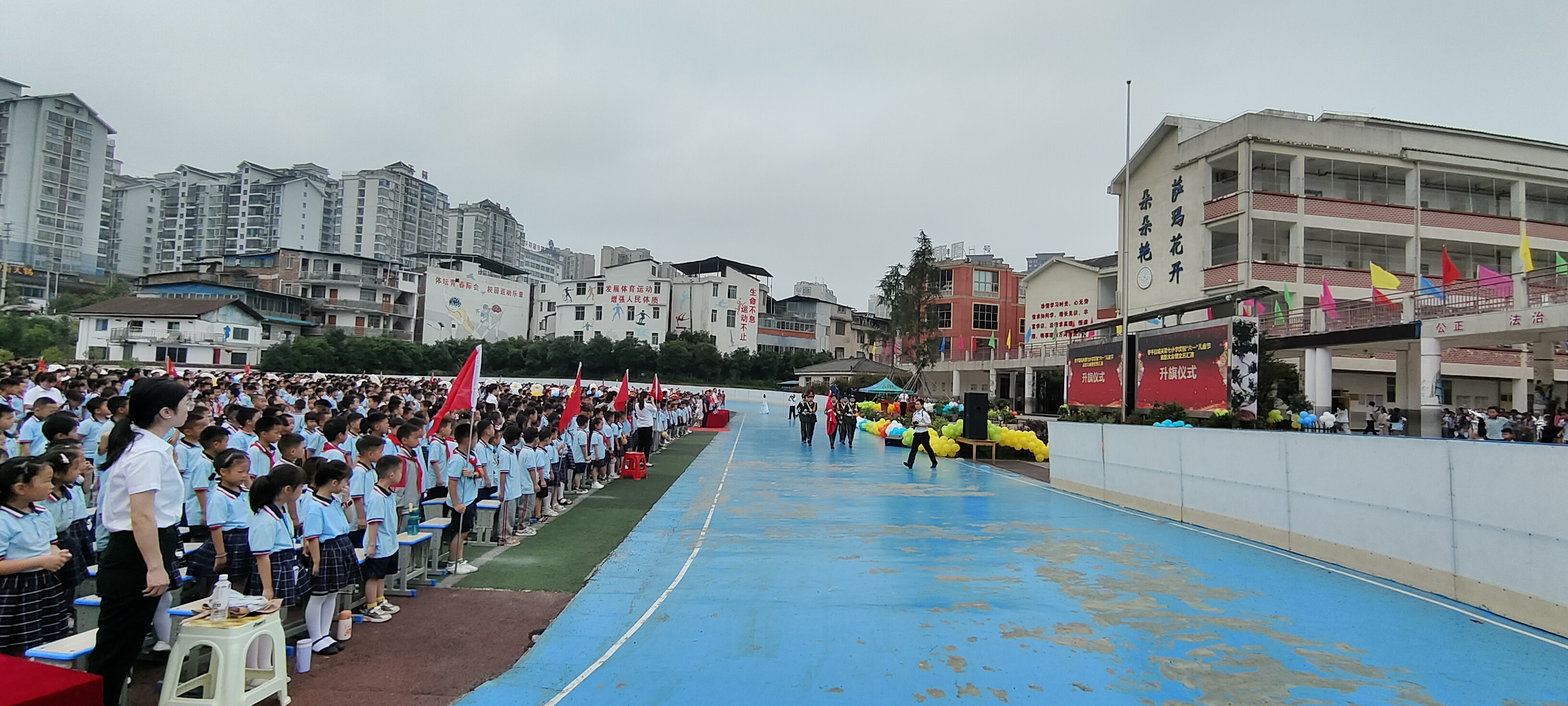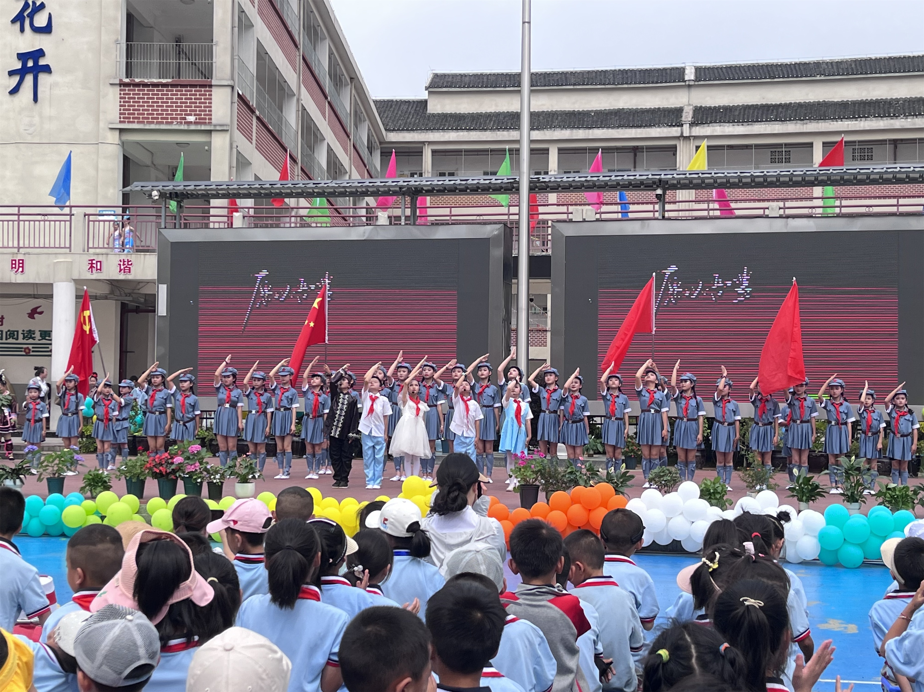 在黎平县第七小学“六一”儿童节活动现场,随着庄严的国歌响起,鲜艳的五星红旗徐徐升起 ,拉开了本次“六一”儿童节活动帷幕。大家一起唱国歌,看着那徐徐升起的五星红旗,让人心里总是有一种难以用言语形容的澎湃感。庄严的国歌声,神圣的五星红旗,唤起心中无比的骄傲和自豪。