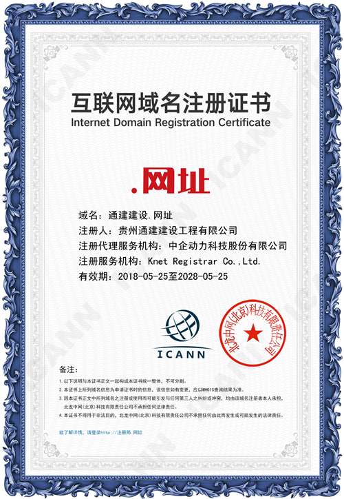 域名“通建建设”正式落户“贵州通建”网站