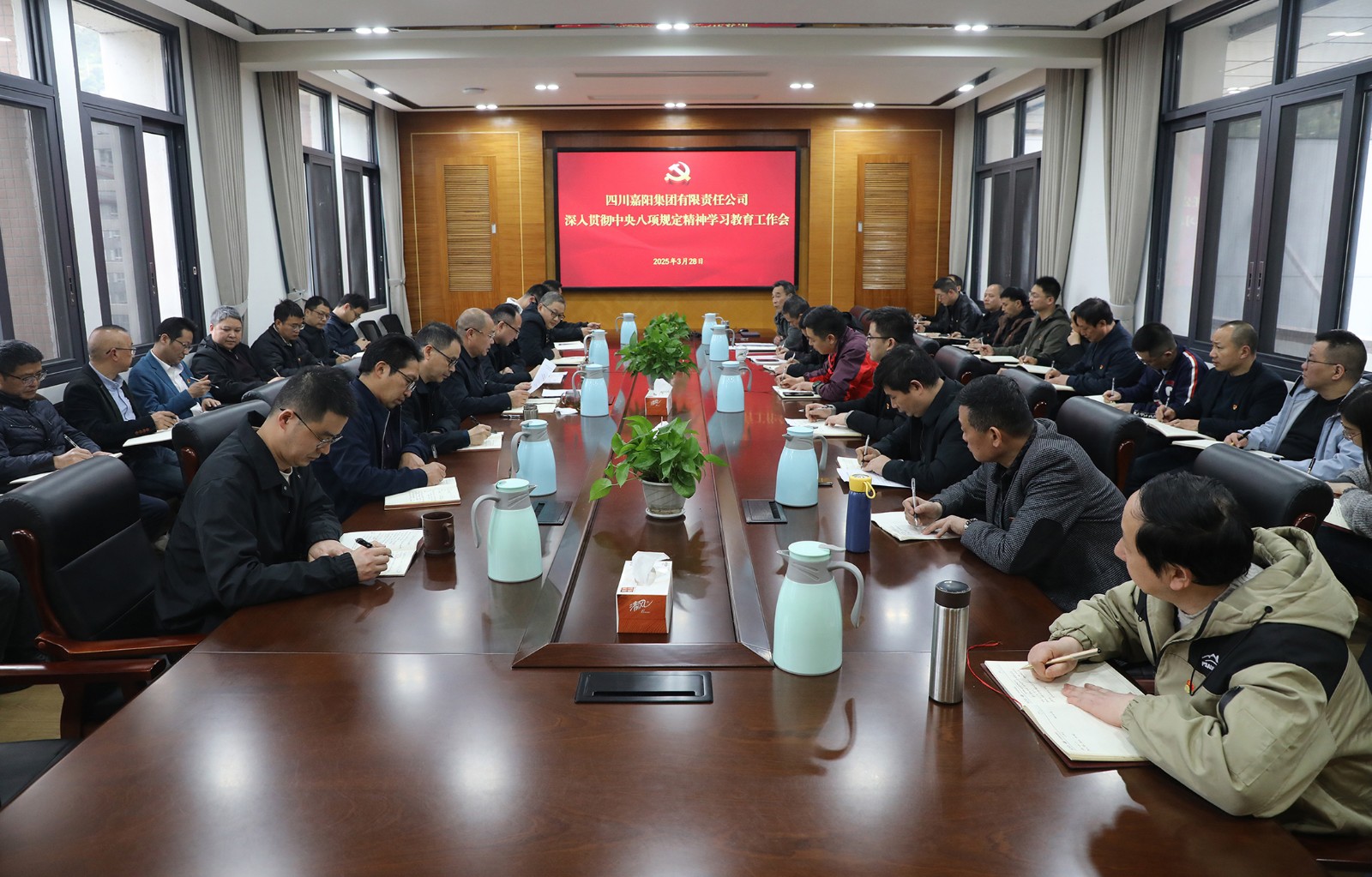 3月28日,嘉阳集团党委组织召开了深入贯彻中央八项规定精神学习教育工作会,公司领导班子成员和全体党支部书记参加会议。