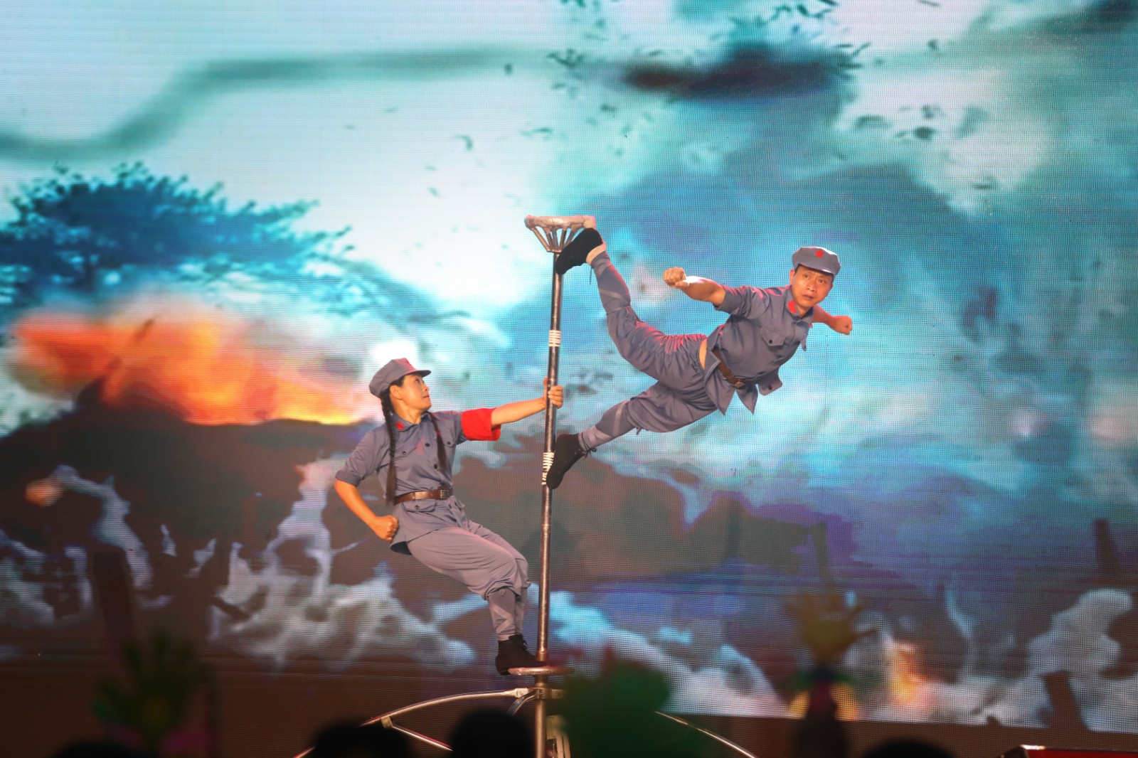晚会在舞蹈《我和我的祖国》中拉开序幕,女声独唱《不忘初心》、红歌联唱《山丹丹花开红艳艳》、群舞《万疆》为党的101岁生日祝福,现场观看高难度的杂技《征途》更觉惊险和精彩,节目川剧《变脸》《机器舞》《我是大民星》等互动性节目让台下观众也有满满的参与感,二人相声《赞歌献给党》、散打评书幽默风趣,整台晚会内容丰富,赢得了观众的阵阵笑声和掌声。